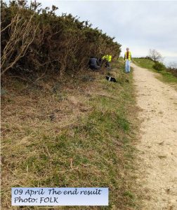 This was our last opportunity to do scrub bashing before we have to stop for a while to ensure we don’t disturb nesting birds. We therefore took the opportunity to have a last go at gorse removal in the area above the Gallops which we started in November. It’s looking a lot clearer now.